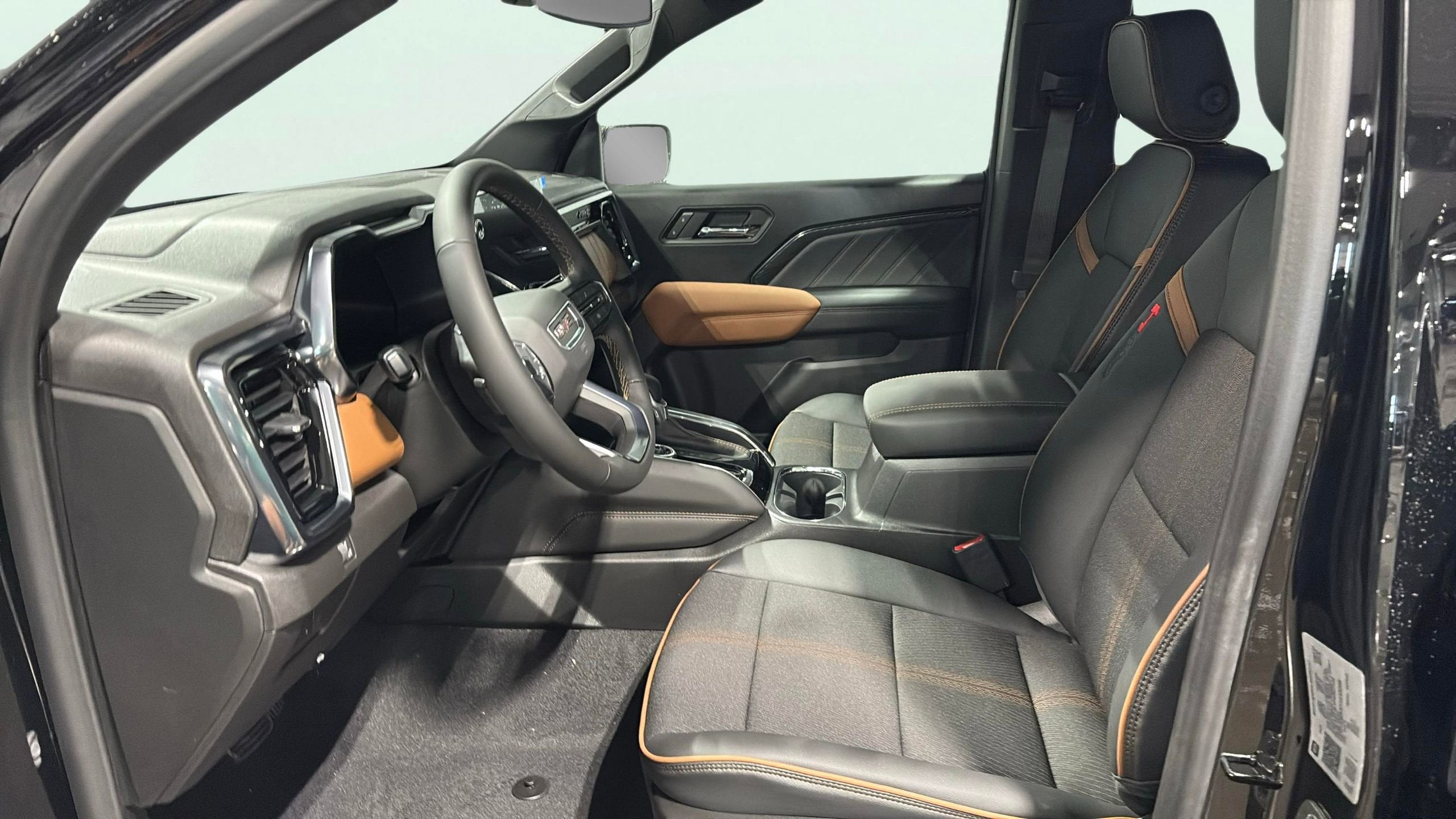 This Canyon AT4 is nicely equipped with Canyon Safety Plus Package (Blind Zone Steering Assist with Trailering, Rear Cross Traffic Braking, and Ultrasonic Rear Park Assist), Preferred Equipment Group 4SG (120-Volt Bed Mounted Power Outlet, 2 Rear USB Ports in Center Console (Charge-Only), 8-Way Power Driver Seat Adjuster, Automatic Emergency Braking, Canyon Pro Safety, Driver and Front Passenger Illuminated Visors, Dual-Zone Automatic Climate Control Air Conditioning, EZ-Lift and Lower Tailgate, Following Distance Indicator, Forward Collision Alert, Front LED Fog Lamps, Front Pedestrian and Bicyclist Braking, Heated Driver and Front Passenger Seats, Inside Rear-View Auto-Dimming Mirror, IntelliBeam Automatic High Beam on/Off, Interior Overhead Courtesy Light with Dual Reading Lamp, Lane Keep Assist with Lane Departure Warning, MultiStow Tailgate Storage Compartment, Power Driver Lumbar Control Seat Adjuster, Rear of Console 120-Volt Power Outlet, Remote Vehicle Starter System, Tailgate Keyed Cylinder Lock, and Til and Telescopic Manual Steering Column), 4WD, 1st and 2nd Rows All-Weather Floor Liner, 2 1st Row USB Charge/Data Ports, 3.42 Rear Axle Ratio, 4-Way Manual Front Passenger Seat Adjuster, 4-Wheel Disc Brakes, 6 Speakers, 6-Speaker Audio System Feature, ABS brakes, Air Conditioning, Alloy wheels, AM/FM radio: SiriusXM with 360L, Apple CarPlay/Android Auto, Auto High-beam Headlights, Auto-dimming Rear-View mirror, Automatic Stop/Start, Automatic temperature control, Brake assist, Bumpers: body-color, Cloth/CoreTec Seat Trim, Compass, Delay-off headlights, Driver door bin, Driver Mode Selector, Driver vanity mirror, Dual front impact airbags, Dual front side impact airbags, Electronic Stability Control, Emergency communication system: OnStar, Front anti-roll bar, Front Bucket Seats, Front Center Armrest, Front dual zone A/C, Front fog lights, Front License Plate Kit, Front Passenger Seatback Map Pocket, Front reading lights, Front wheel independent suspension, Heated door mirrors, Heated front seats, Illuminated entry, Low tire pressure warning, Navigation System, Occupant sensing airbag, Off-Road Suspension, Outside temperature display, Overhead airbag, Overhead console, Panic alarm, Passenger door bin, Passenger vanity mirror, Power door mirrors, Power driver seat, Power steering, Power windows, Radio data system, Radio: 11.3 Diagonal Premium GMC Infotainment System, Rear reading lights, Rear step bumper, Rear window defroster, Remote keyless entry, Security system, SiriusXM with 360L, Speed control, Speed-sensing steering, Split folding rear seat, Steering wheel mounted audio controls, Stop/Start System Disable Button Engine Control, Tachometer, Telescoping steering wheel, Tilt steering wheel, Traction control, Trip computer, Variably intermittent wipers, Wheels: 18 x 8.5 Gloss Black Aluminum, and Wireless Apple CarPlay/Wireless Android Auto.