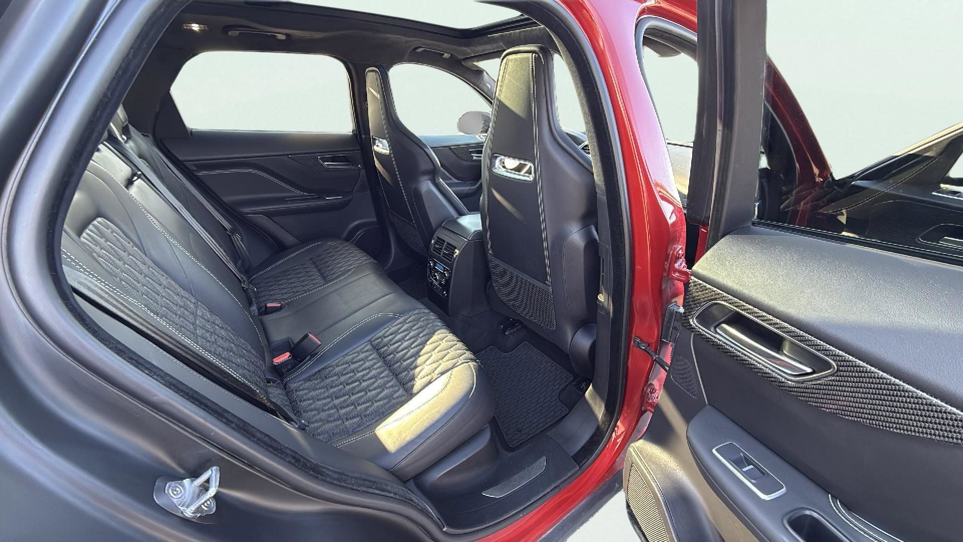 Designed to turn heads, the F-PACE SVR's bold, red exterior commands attention, while the premium Lozenge Quilted Windsor Leather Seat Trim and heated and cooled front performance seats ensure unparalleled comfort and style. With features like the 360 Parking Aid, Auto High-beam Headlights, and Adaptive Suspension, this vehicle offers both high-tech convenience and dynamic handling.