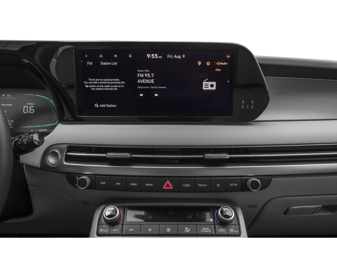 - Radio: AM/FM/MP3 Audio System -inc: 12.3" color touchscreen display, onboard navigation w/traffic flow including incident data via HD Radio (HERE), Over-the-Air (OTA) map updates, SiriusXM, USB, Android Auto and Apple CarPlay, rear seat quiet mode, Bluetooth® hands-free connectivity w/multiple device connection and wireless audio streaming, Wifi hotspot, dynamic voice recognition and Bluelink Connected Car System
