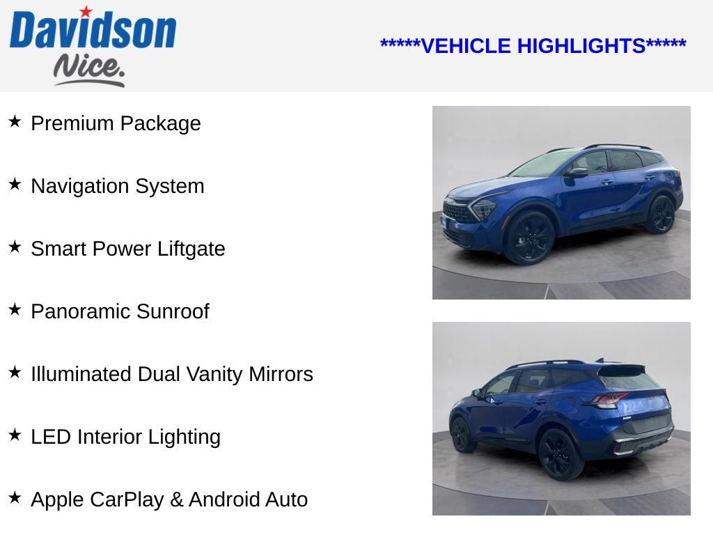 Elevate your driving experience with the captivating 2025 Kia Sportage X-Line. This exceptional SUV boasts a striking blue exterior and a meticulously crafted interior that seamlessly blends style and functionality.